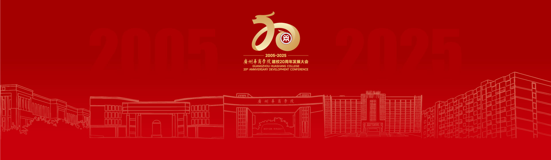 广州华商学院二十周年校庆LOGO以简洁流畅的线条构成数字“20”,直观展现建校二十周年的重要里程碑,彰显学校与时俱进、锐意创新的发展姿态。