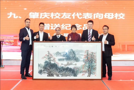 ▲向母校赠送纪念品——《肇庆星湖一景》